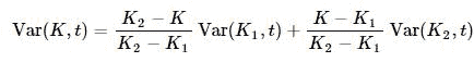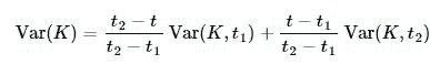 我们并不是直接在波动率上进行插值,而是在方差矩阵上面进行插值。方差和波动率的关系如下: