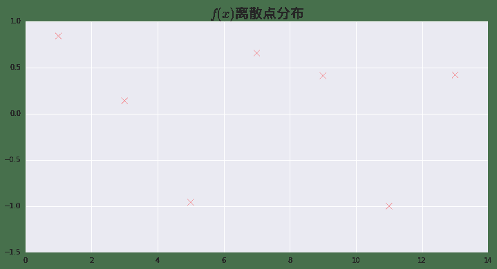 pylab.title(u'$f(x)$离散点分布', fontproperties = font)