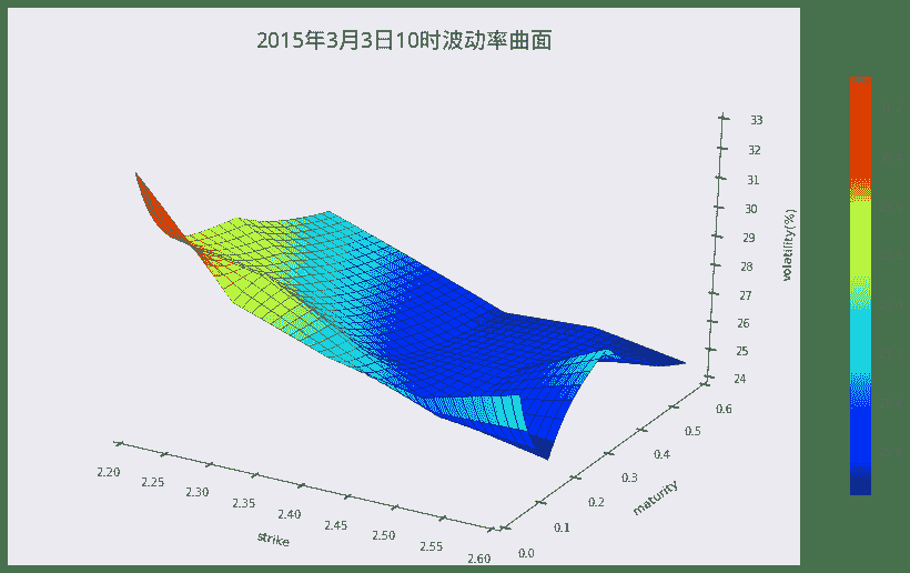 pylab.title(u'2015年3月3日10时波动率曲面', fontproperties = font)