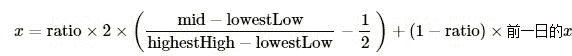 diff = (tdyMidPrice - minLowPrice)/(maxHghPrice - minLowPrice) - 0.5