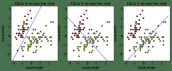 axes[i].set_title('Class '+ str(i) + ' versus the rest')