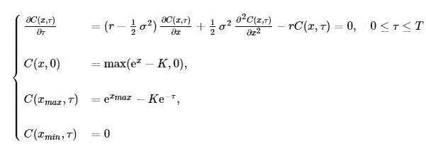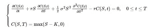 BSM模型可以设置为如下的偏微分方差初值问题: