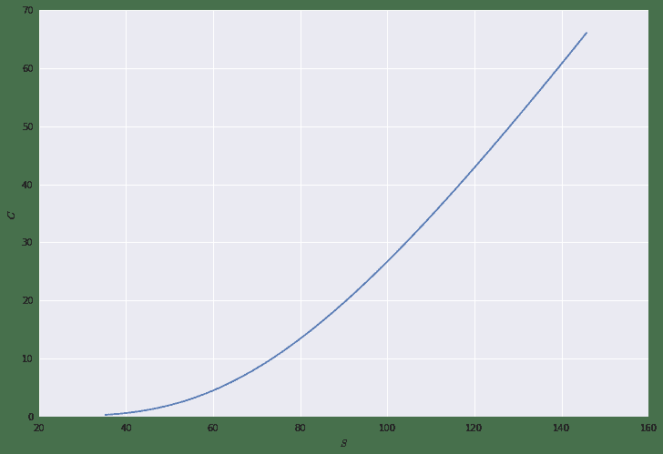 pylab.plot(np.exp(scheme.xArray)[50:170], scheme.C[50:170,-1])
