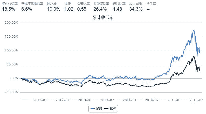 回测区间从2011年8月1日~2015年8月1日,基准为沪深300,策略每月第一个交易日开盘之后建仓