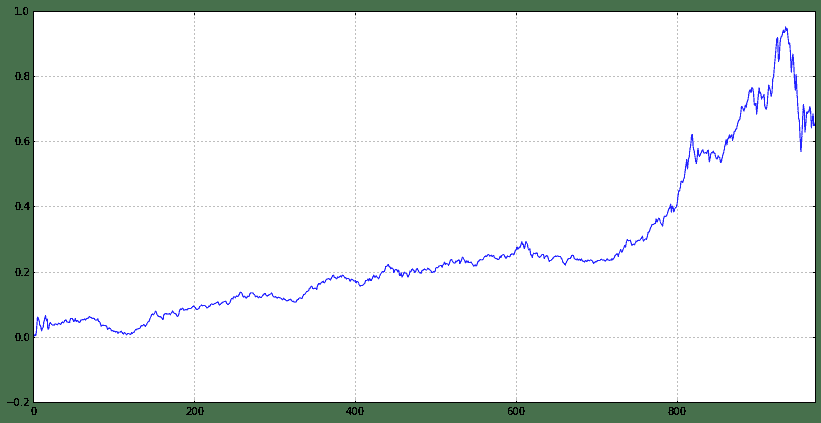 ((bt['portfolio_value']/bt['portfolio_value'][0] - 1) - ((1 + bt['benchmark_return']).cumprod() - 1)).plot(figsize=(14,7))