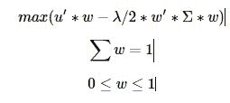 w为资产权重,λ为投资者风险厌恶系数,Σ为方差协方差矩阵 -