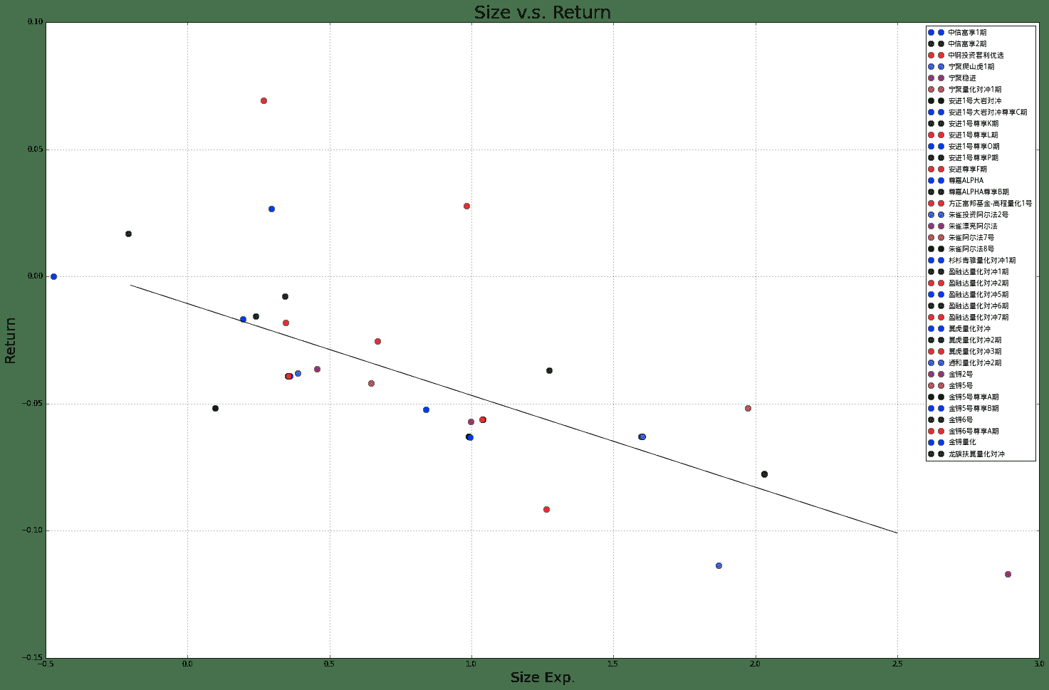 ax.set_title('Size v.s. Return', fontsize = 25)