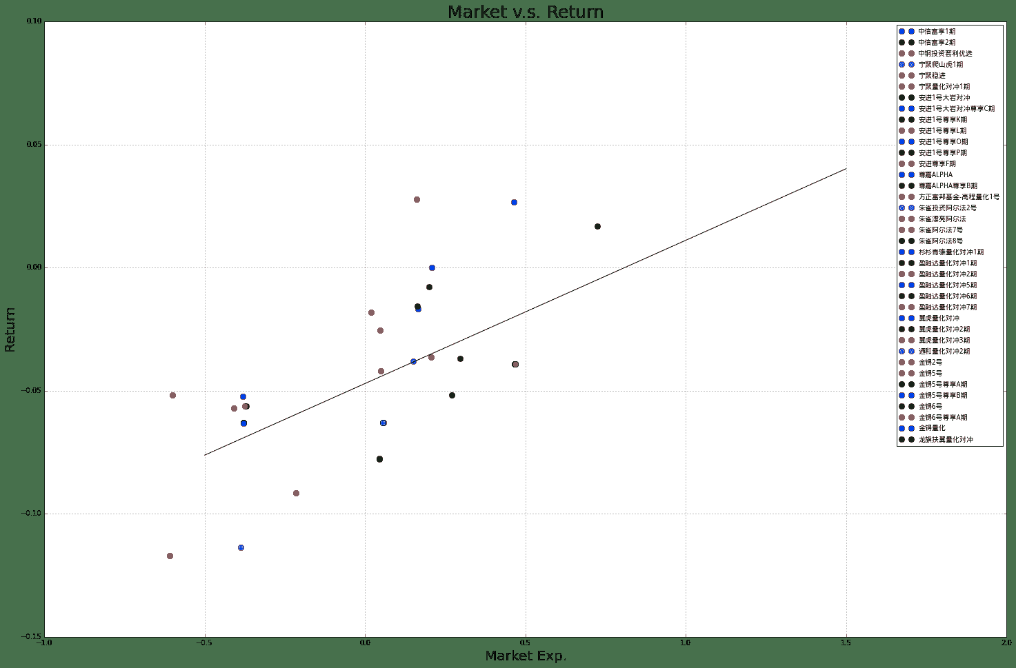 ax.set_title('Market v.s. Return', fontsize = 25)