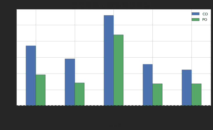 ax.set_title(u'日交易量(按照期权类型)', fontproperties = font, fontsize = 25)