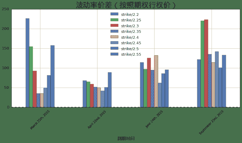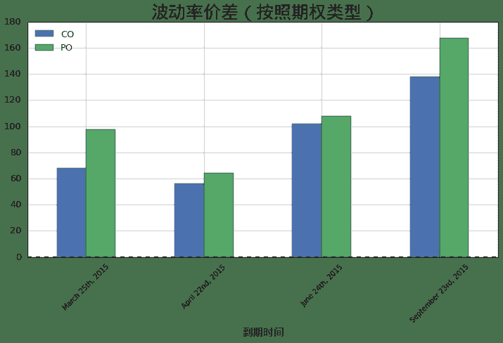 ax.set_title(u'波动率价差(按照期权类型)', fontproperties = font, fontsize = 25)