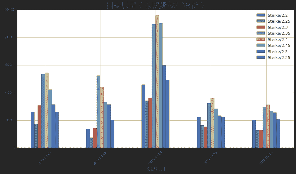每个交易日不同行权价期权的交易量: