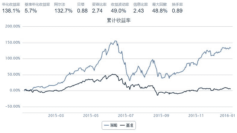 实际操作中,总是持有满足上述两个条件的股票集合的交集,按月调仓