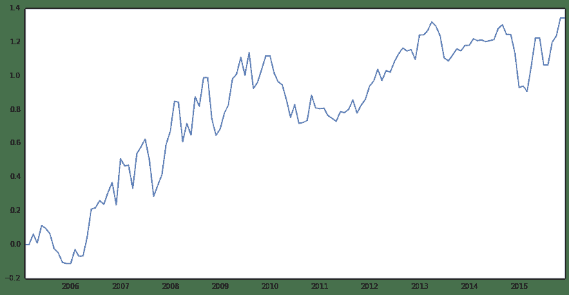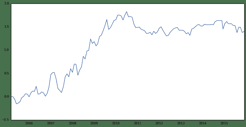 plt.plot(PMI['publishTime'], PMI['cumulative return'])