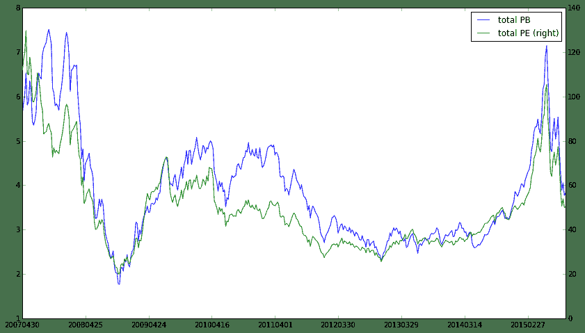 PB_PE = pd.DataFrame(index=Dates, data=0, columns=['total PB','total PE'])
