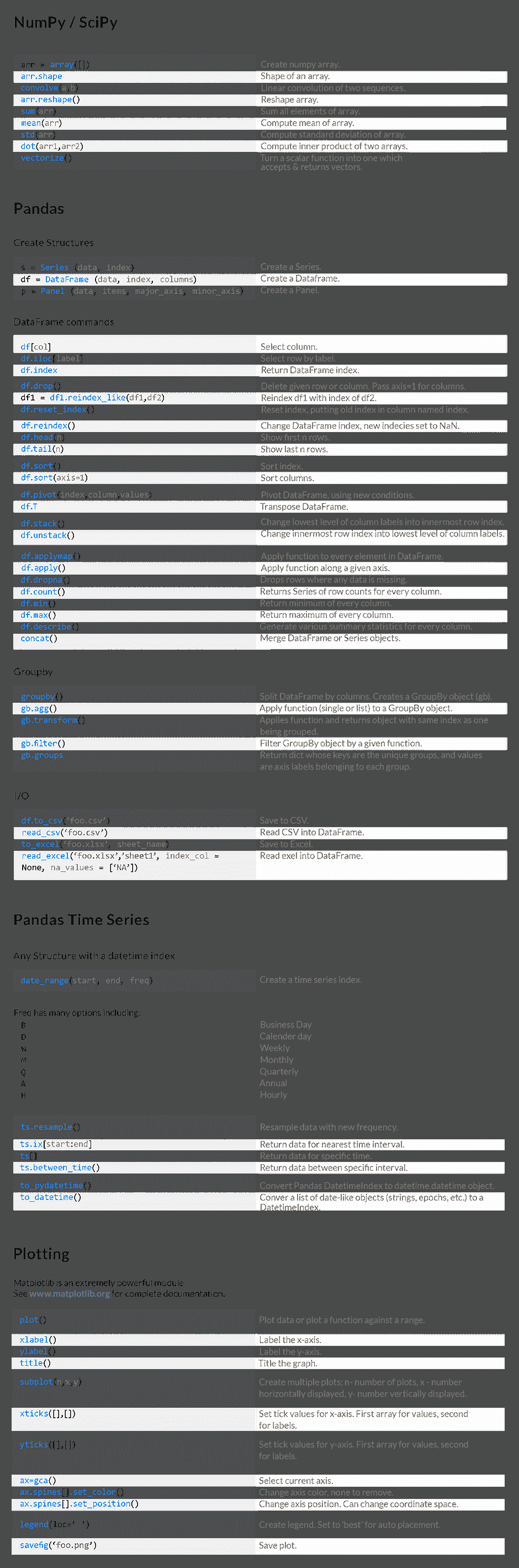 最后献上NumPy SciPy Pandas Cheat Sheet